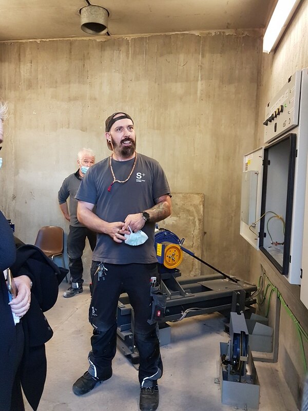 Halt machte der RAV-Bus zunächst bei der „Schmitt + Sohn Aufzüge Berlin GmbH“, einem Aufzugshersteller und –servicedienstleister. Um dessen Ausbildungsberufe praxisnah vorstellen zu können, wurden die Teilnehmenden in das neben der Niederlassung des Unternehmens befindliche Gebäude des Jobcenters Reinickendorf geführt. Dort wurde die Technik im Schachtkopf präsentiert. Dazu mussten die Eltern und Jugendlichen dem Jobcenter Reinickendorf im wahrsten Sinne des Wortes aufs Dach steigen. Auch wurden ihnen seltene Einblicke in einen Aufzug von oben und in einen Aufzugsschacht gewährt. Eine Ausbildung bei der „Schmitt + Sohn Aufzüge Berlin GmbH“ ist der Einstieg in eine berufliche Zukunft mit hervorragenden Entwicklungsmöglichkeiten und langfristigen Perspektiven.