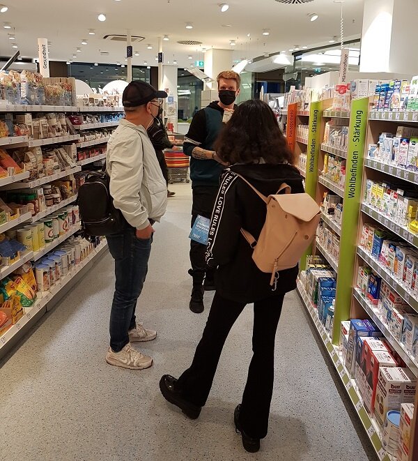 Beim „Kräuterraten“ erfuhren die Eltern, dass das Wissen über Pflanzen und ihre heilende Wirkung ein wesentlicher Bestandteil der Ausbildung ist. Denn nur mit diesem Fachwissen können die Mitarbeiter*innen in den Filialen ihre Kundschaft zielführend beraten. Der Besuch in der Filiale des deutschlandweit bekannten Drogerieunternehmens bot den Eltern, neben den Mitmach-Aktionen, Raum für individuelle Gespräche mit Mitarbeitenden des Geschäfts, die selbst bei dm gelernt haben und so authentisch aus dem Ausbildungsalltag berichten konnten.