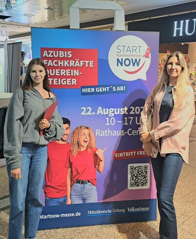 Im Rahmen des Bewerbungscoachings für Migrant*innen besuchten die Teilnehmer und Teilnehmerinnen der Euro-Schulen Bitterfeld-Wolfen gemeinsam mit ihrem Coach die Karrieremesse Start Now in Dessau-Roßlau.