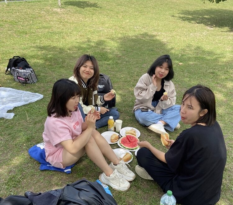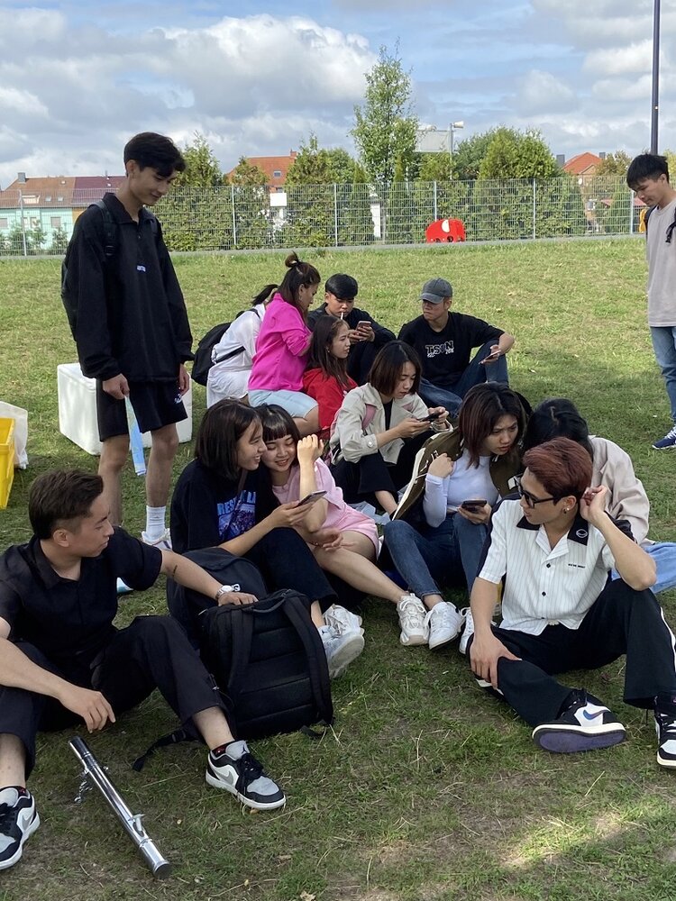 Im Anschluss ging es weiter über den Outdoor Fitnesspark, zum Tiergehege und dann zum Bitterfelder Bogen. Alle waren hier beeindruckt von der tollen Aussicht. Die letzte Station war die blaue Bank am Goitzsche-See. Hier wollten wir ein Picknick veranstalten. Da es dort aber sehr heiß war, sind wir zum Goitzsche-Strand umgezogen. Unter den Bäumen fand dann das Picknick statt. So etwas hatten die Schüler und Schülerinnen noch nie erlebt. Bei vietnamesischer Musik und Gesang endete ein außergewöhnlicher Unterrichtstag.