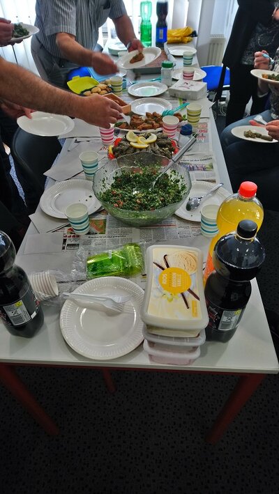Die Teilnehmer*innen des Integrationskurses lernten typische Bräuche zum Fest kennen und trugen ihrerseits kulinarische Köstlichkeiten bei.