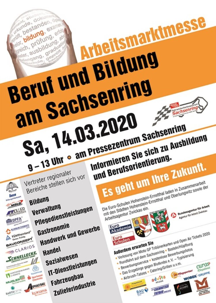Am 14. März 2020 ist es wieder soweit: Die <link https: www.euroakademie.de standorte hohenstein-ernstthal.html _blank external-link-new-window akademie>Euro Akademie und die Euro-Schulen Hohenstein-Ernstthal laden, in Kooperation mit den Städten Hohenstein-Ernstthal und Oberlungwitz sowie der Arbeitsagentur Zwickau, zur Arbeitsmesse „Beruf und Bildung am Sachsenring“ ein.
