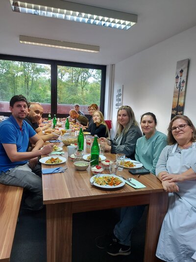 Das Team der Euro-Schulen Westfalen GmbH traf sich in lockerer Atmosphäre und bei Pizza und Salaten zum fachlichen Austausch und für Gespräche.