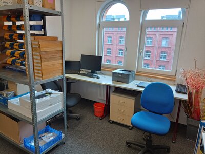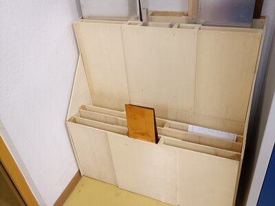 Ein Verkaufskabinett sollte arbeiten wie eine echte kleine Übungsfirma – das war die Maßgabe. So wurden uns 180 Faltschachteln/ Karton geliefert, welche passgenau in unsere Lagersysteme passten und nun sinnvoll eingesetzt werden sollten.