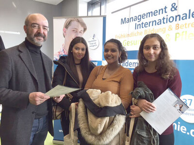 Das Team aus Mainz und Wiesbaden beriet am Stand der Euro Akademie Schüler und Eltern zum Ausbildungsangebot.
